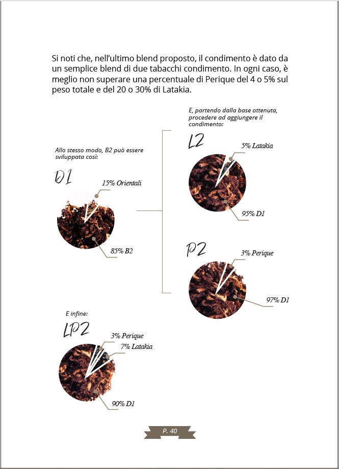 Home Blending è l’unico libro al mondo che ti insegnerà l’arte di miscelare i tabacchi da pipa. L’idea di poter offrire ai lettori di GustoTabacco un contenuto di così alto livello, è nata dal confronto con gli importati master blender con cui ci siamo confrontati negli ultimi anni. La mancanza di libri che spiegassero l’arte di creare miscele per pipa, ci ha convinto ad affrontare un argomento bellissimo ed intrigante come questo. Il libro che stai per acquistare è stato scritto e arricchito anche da esperti del settore di fama mondiale! Troverai inoltre i contributi di: Luigi Ferri: prefazione Domenico Napoletano: cenni sulla produzione industriale dei tabacchi da pipa Russ Ouellette: Uso dei tabacchi da condimento Mauro Cosmo: Giocando al piccolo chimico Jeremy Reeves: Riflessioni sulla pressione e la cottura del tabacco dalla Dan Tobacco: consigli e ricettario Se vuoi stupire i tuoi amici con miscele uniche e personali, puoi farlo comprando questo libro. Acquisirai in breve tempo le tecniche segrete dei migliori master blender al mondo!